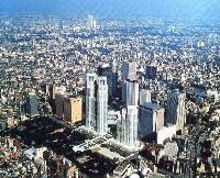 今日日本において超高層が群立する唯一の地区としての新宿西口。雑多な街新宿。においのする街新宿。地下駐車場へ向かうスロープと換気塔と一体となった、何もかも飲み込んでしまうような大きな空洞で形づくられた西口広場。都市にうごめく喧噪をすべて飲み込んでしまうようなかたちで、丹下健三設計の新都庁舎は2本の塔状の建築となって新宿一帯を睥睨する。