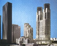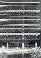 他の高層群に対して「差異」を表現し、そして設計競技を勝ち取るために、シンボル性と呼ばれたその新都庁舎の外観の装飾性ゆえに、結果としてモダニストの立場を転進した、ポストモダニストに変身したといわれるゆえんである。技術、合理主義の化身である超高層の表層に手の痕跡、恣意性(ゴシック調の)を残すことによって、新都庁舎は異様な形態を語りかけているのである。