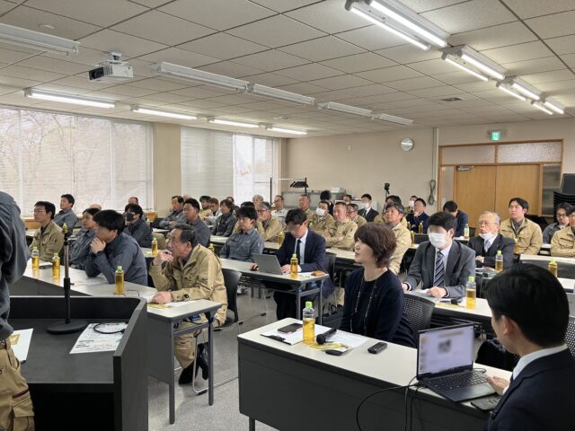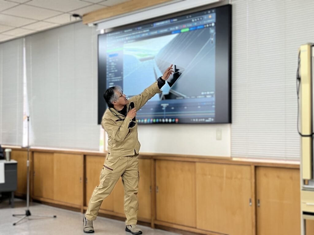 2026年4月17日、本社会議室において開催した『社内技術交流会』では、土木工事の3現場で取り組んだICT活用の発表を中心に、意見交換を行いました。